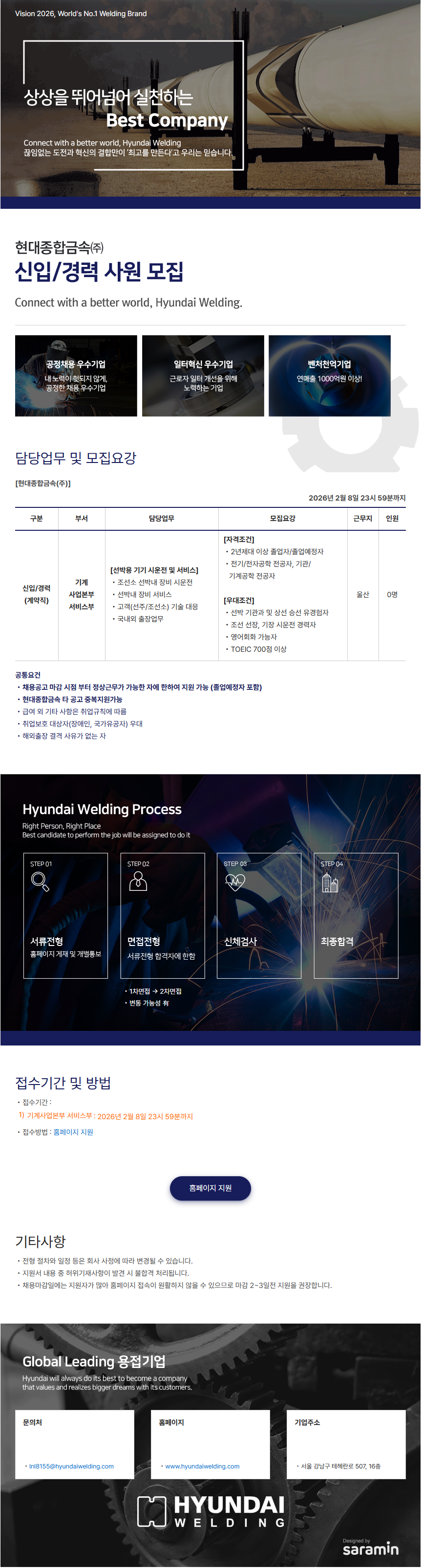 - 근무지역: 울산 북구 산성로 19 현대종합금속