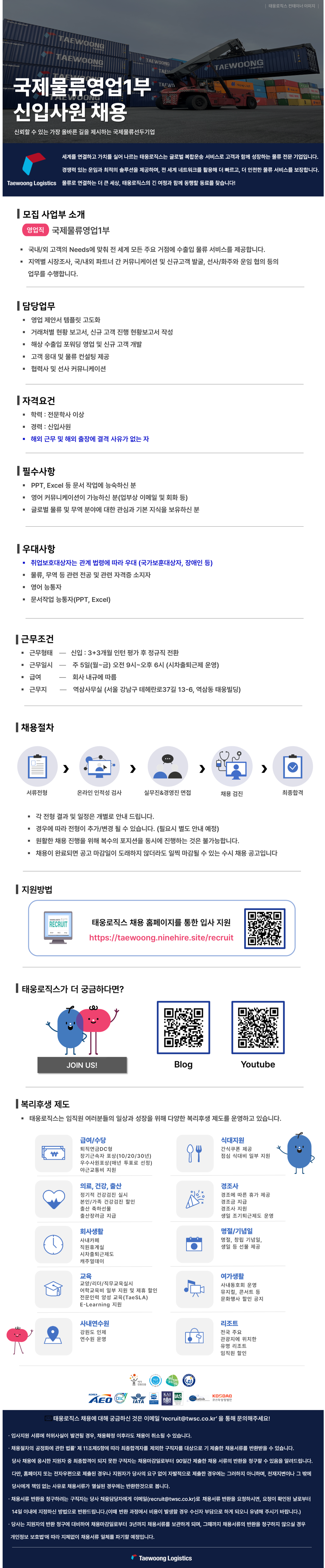 [태웅로직스] 국제물류영업1부 신입사원 채용