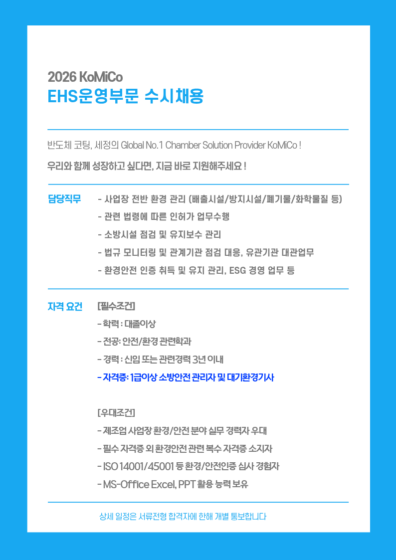 근무지역 : 경기도 안성시 모산로 8, (주)코미코