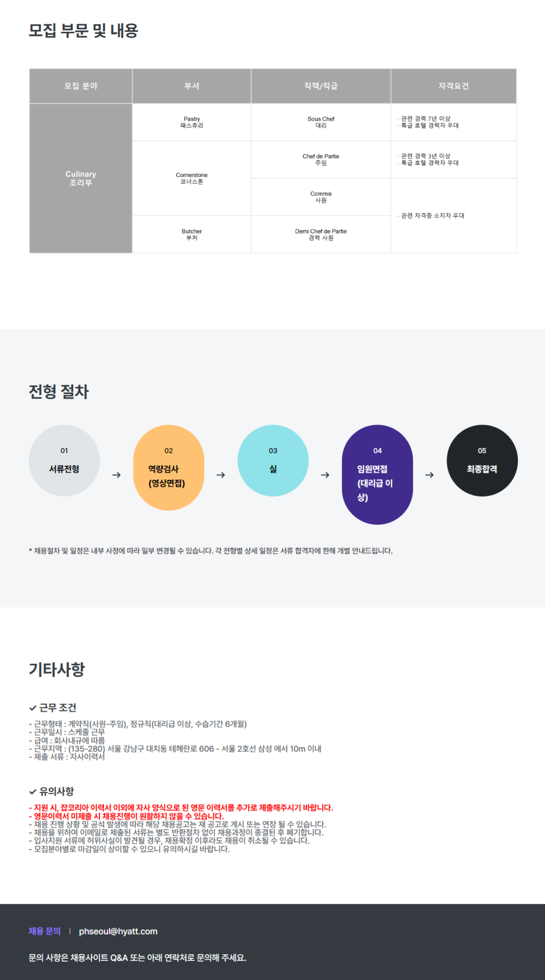 근무지역 : 서울특별시 강남구 테헤란로 606 (대치동) 파크 하얏트 서울