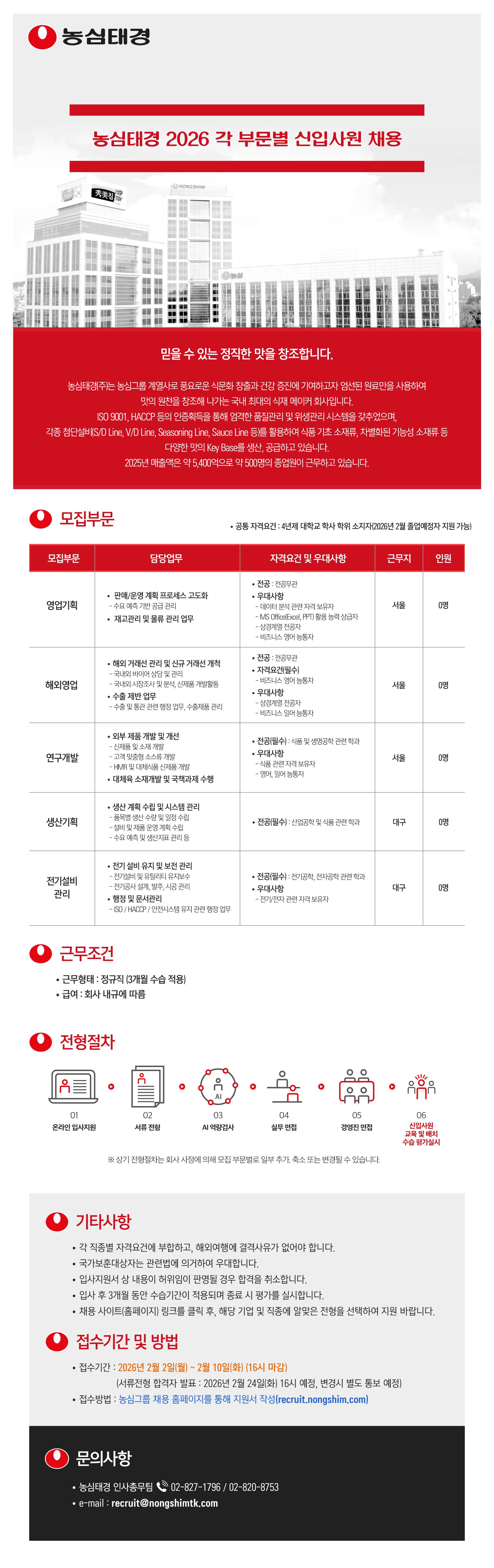 [농심태경] 2026년 각 부문별 신입사원 채용