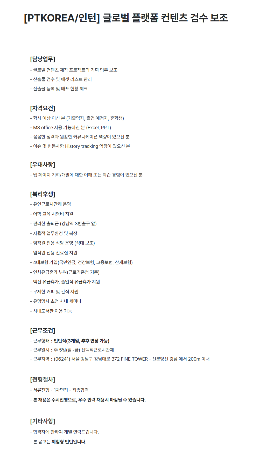 [PTKOREA] 글로벌 플랫폼 컨텐츠 검수 보조