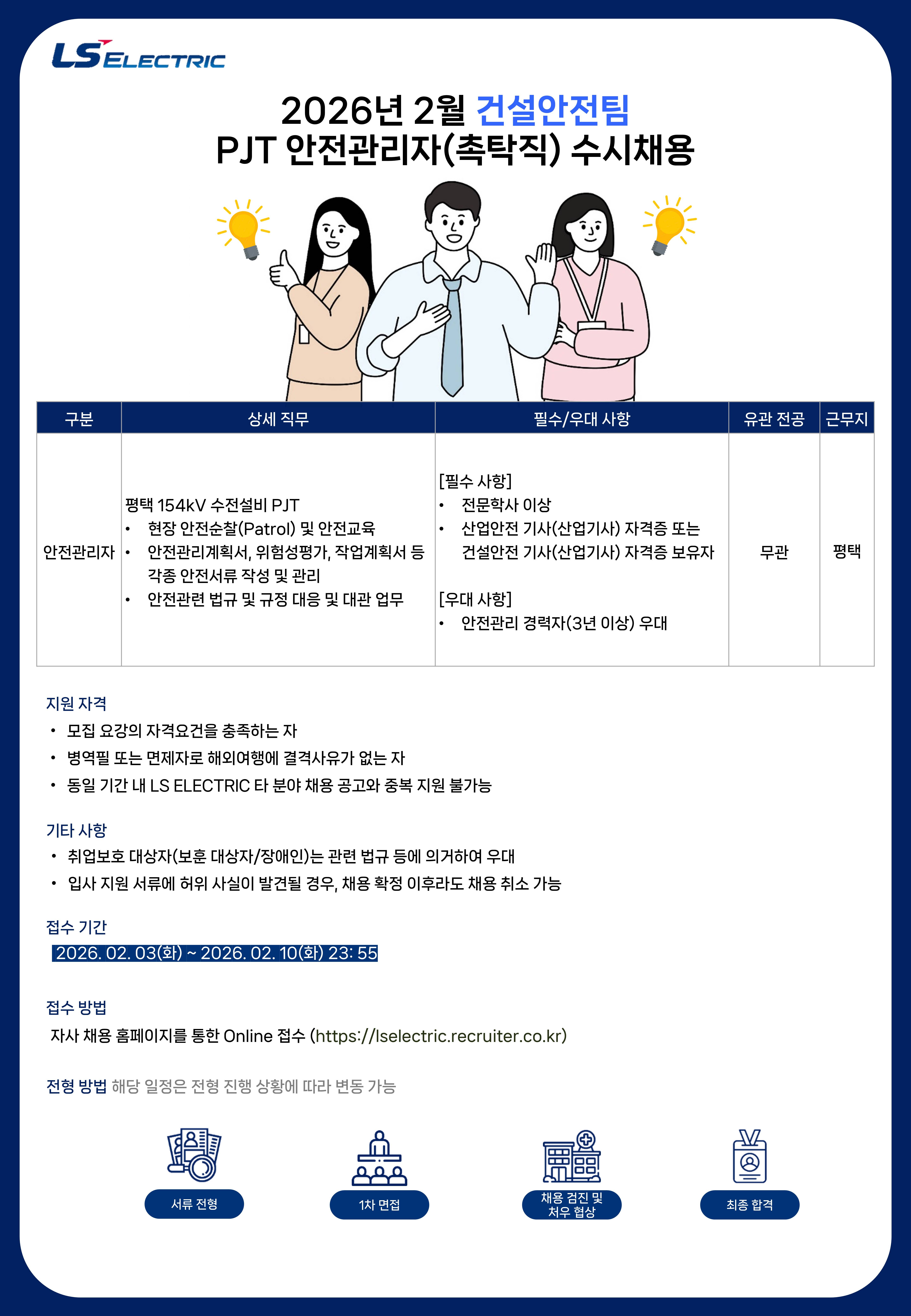 [LS일렉트릭] 2026년 2월 건설안전팀 안전관리자(촉탁직) 수시채용