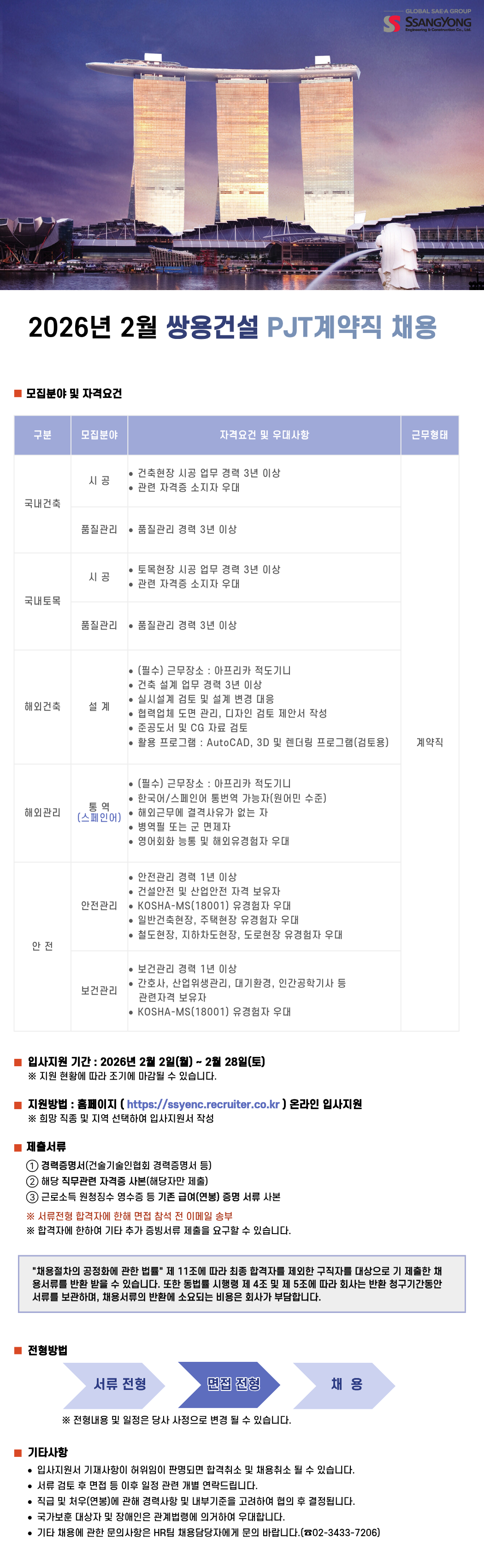 [쌍용건설] 2026년 2월 PJT 계약직 채용