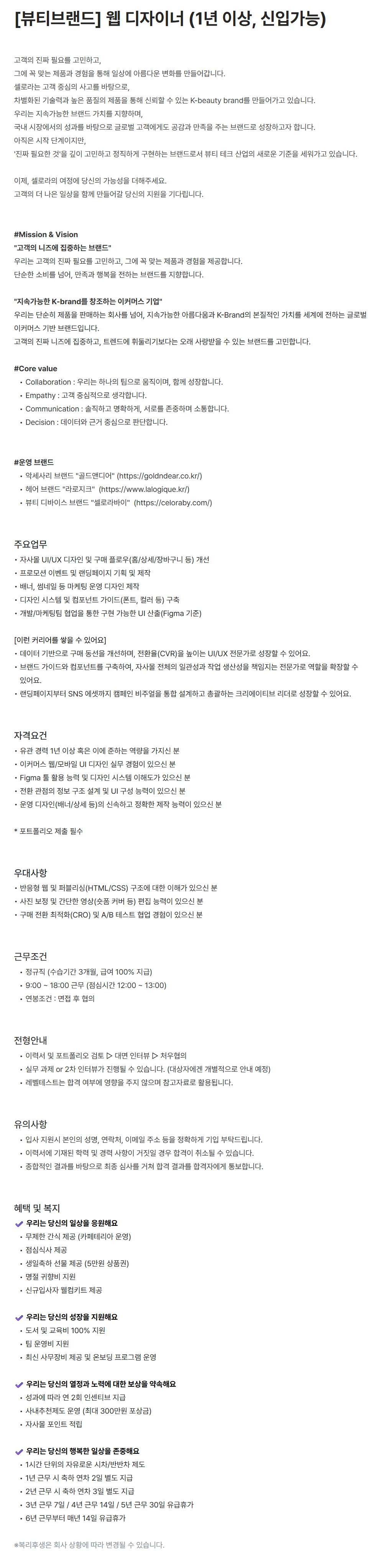 [셀로라] [뷰티브랜드] 웹 디자이너 (1년 이상, 신입가능)