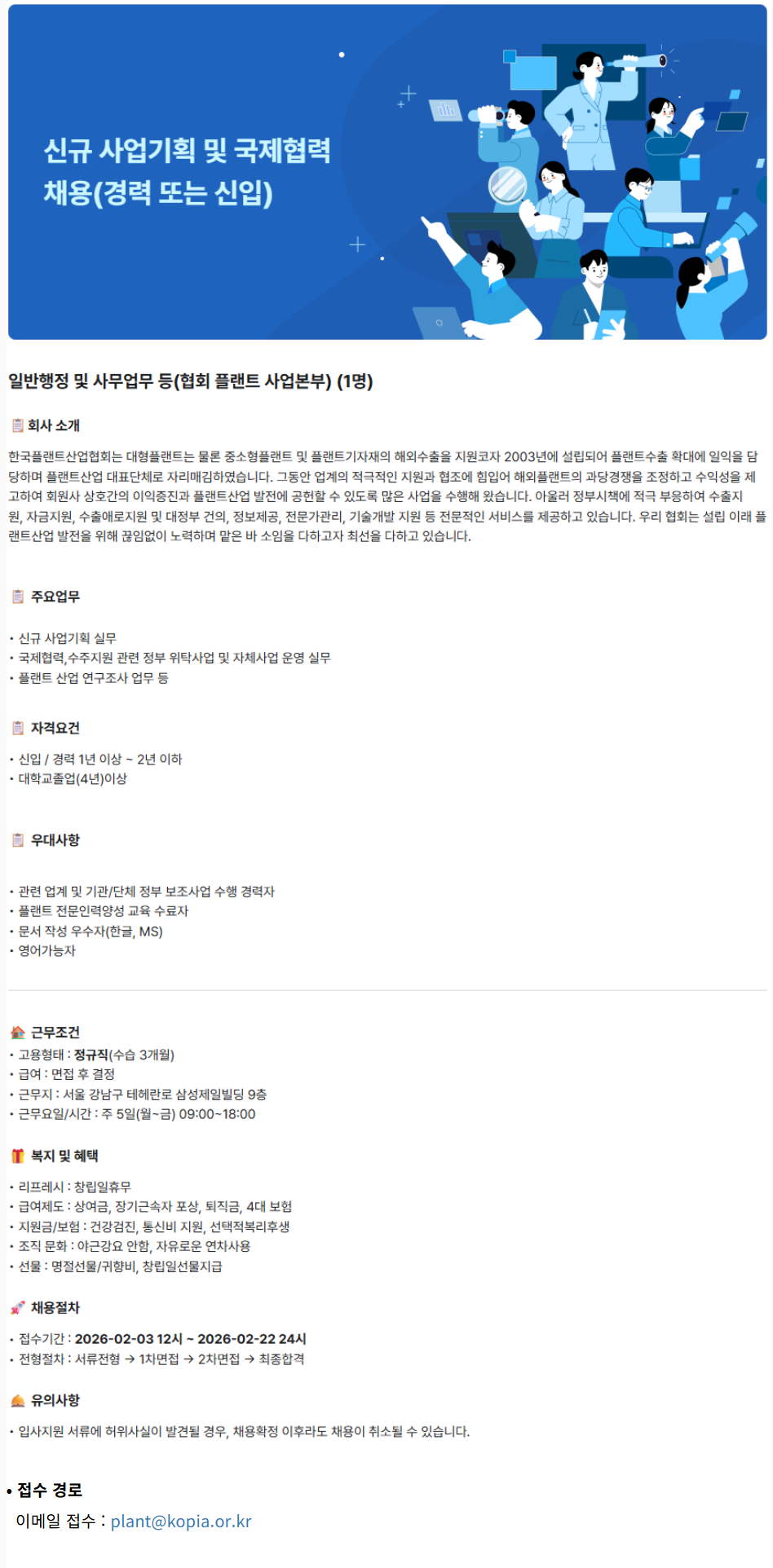 [한국플랜트산업협회] 신규 사업기획 및 국제협력 채용