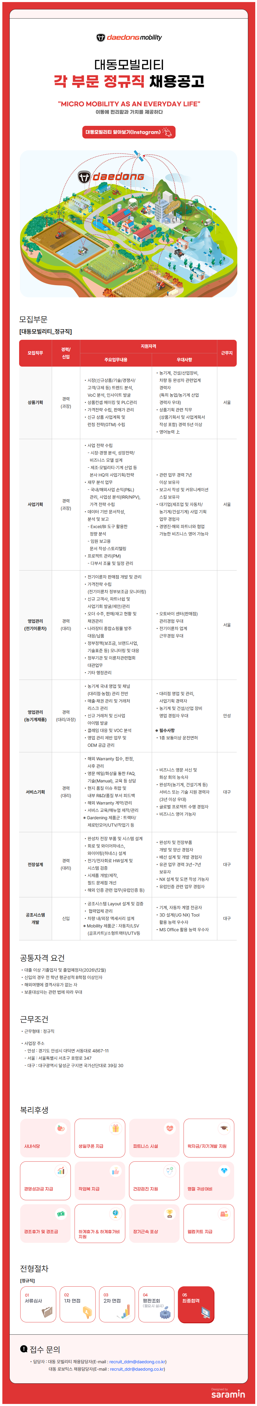 근무지역 : 대구 달성군 구지면 국가산단대로39길 30 (응암리) 대동모빌리티