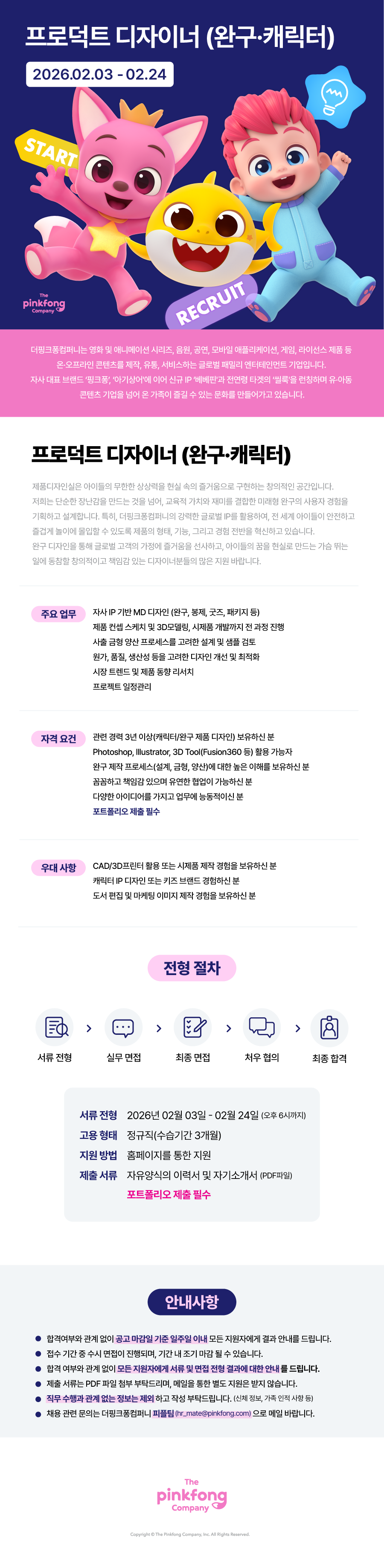 [더핑크퐁컴퍼니] 프로덕트 디자이너 (완구·캐릭터)