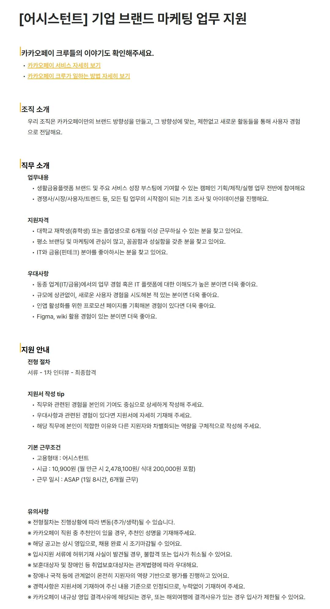 [카카오페이] [어시스턴트] 기업 브랜드 마케팅 업무 지원