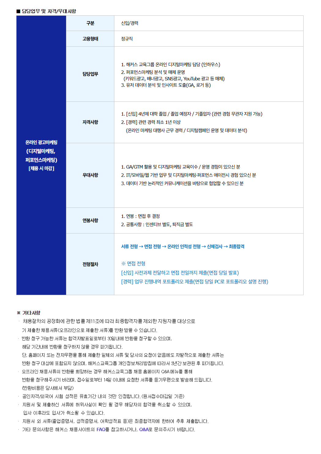 1. 해커스 교육그룹 온라인 디지털마케팅 담당 (인하우스)