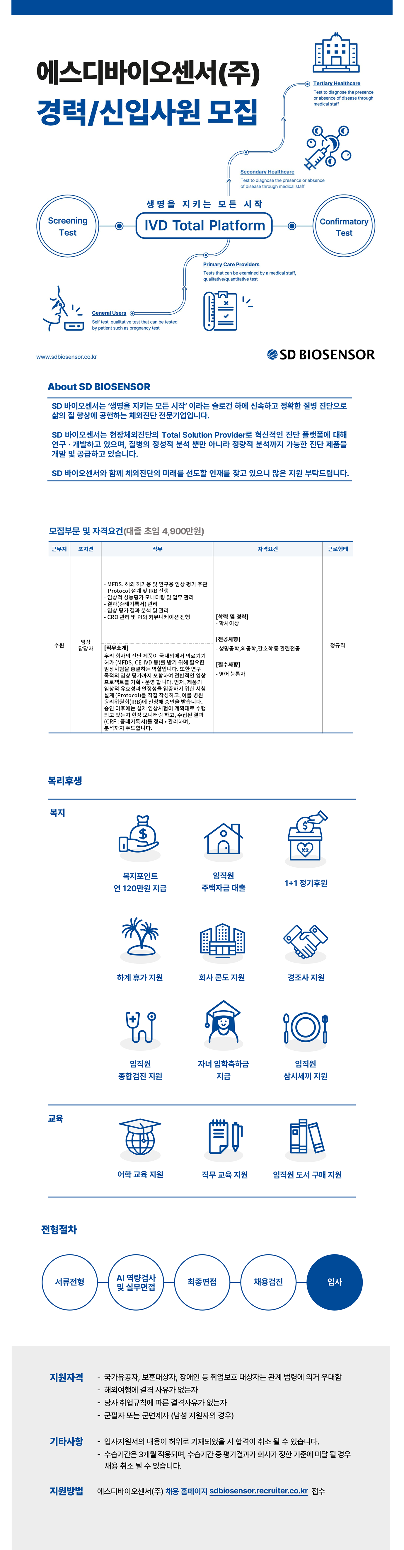[에스디바이오센서] [2월/신입경력/수원] 임상담당자 채용