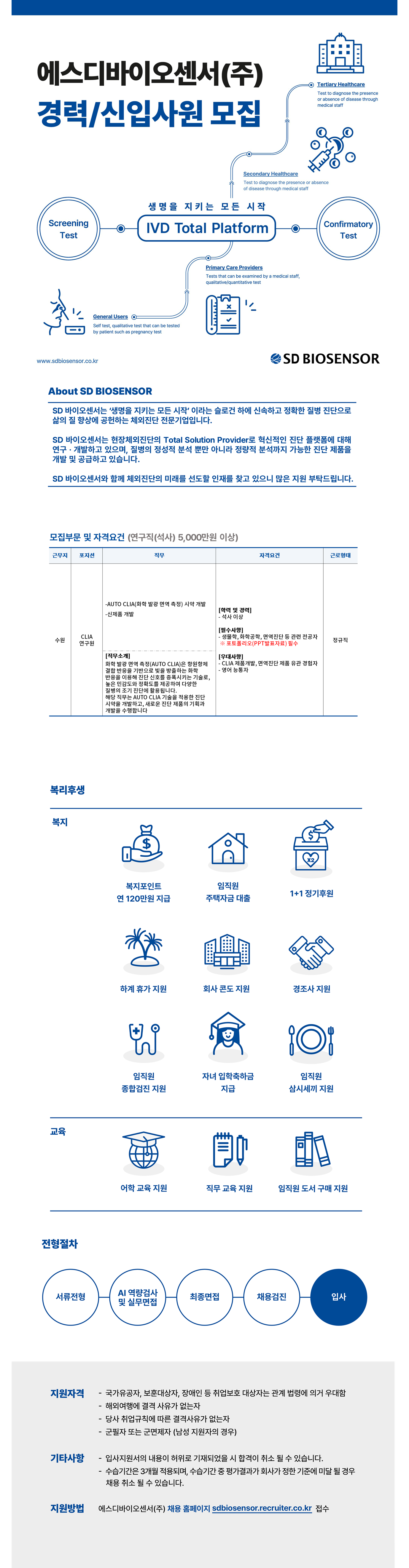[에스디바이오센서] [2월/신입경력/수원] CLIA(화학 면역 발광 측정)연구원 채용