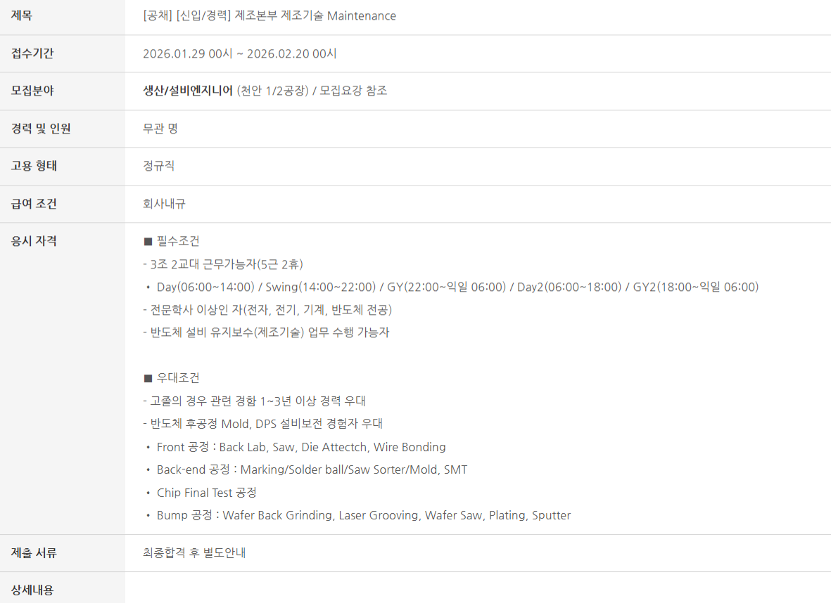 - 반도체 설비 유지보수(제조기술) 업무 수행 가능자