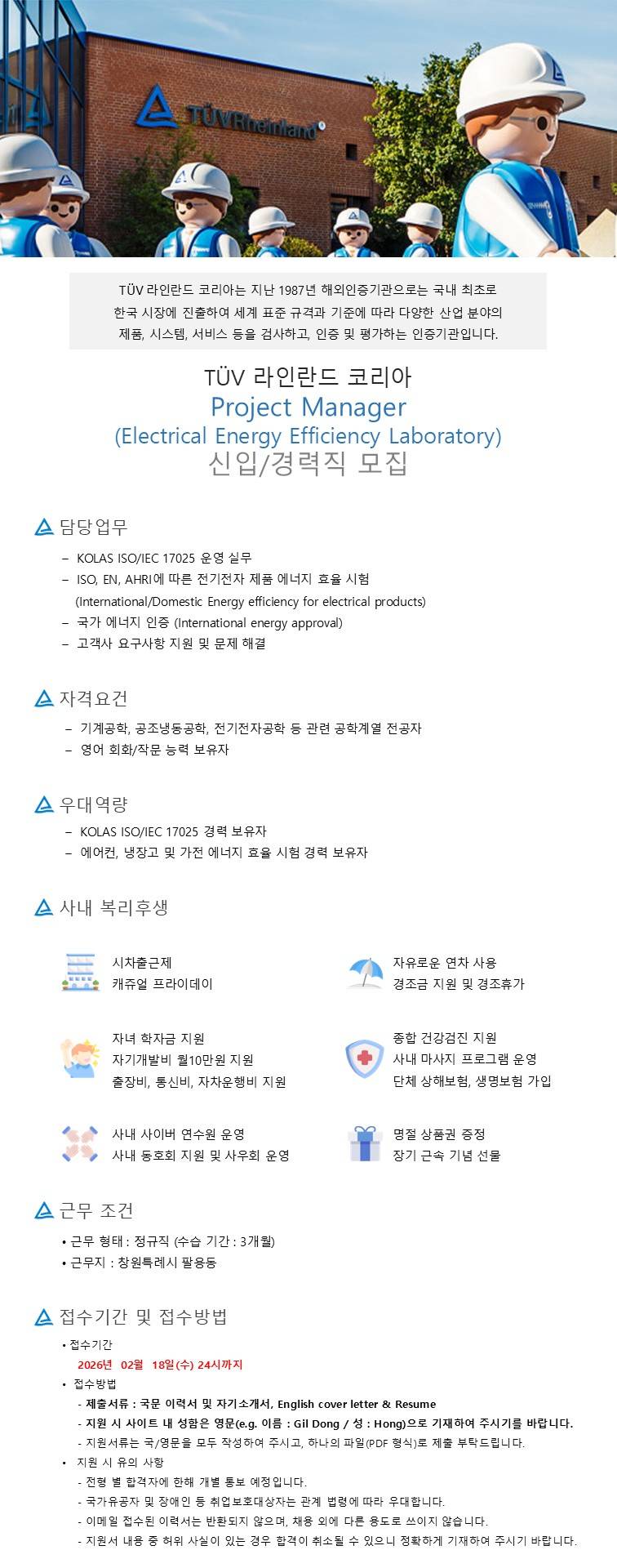 TUV 라인란드 코리아 [창원지사] Project Manager(Energy Efficiency Lab) 신입/경력직 모집