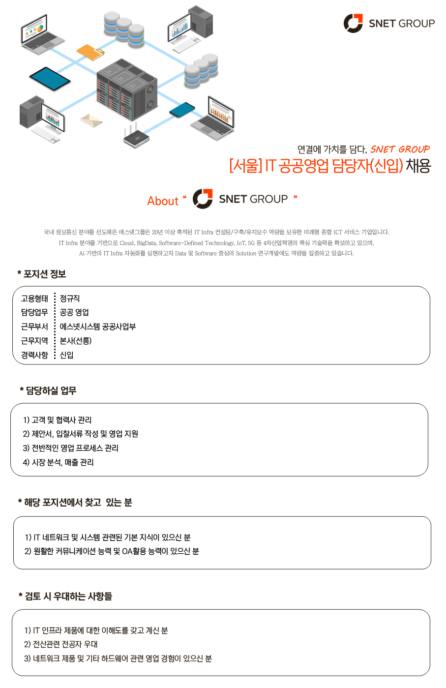 [에스넷시스템] IT 공공영업 담당자 채용(신입)