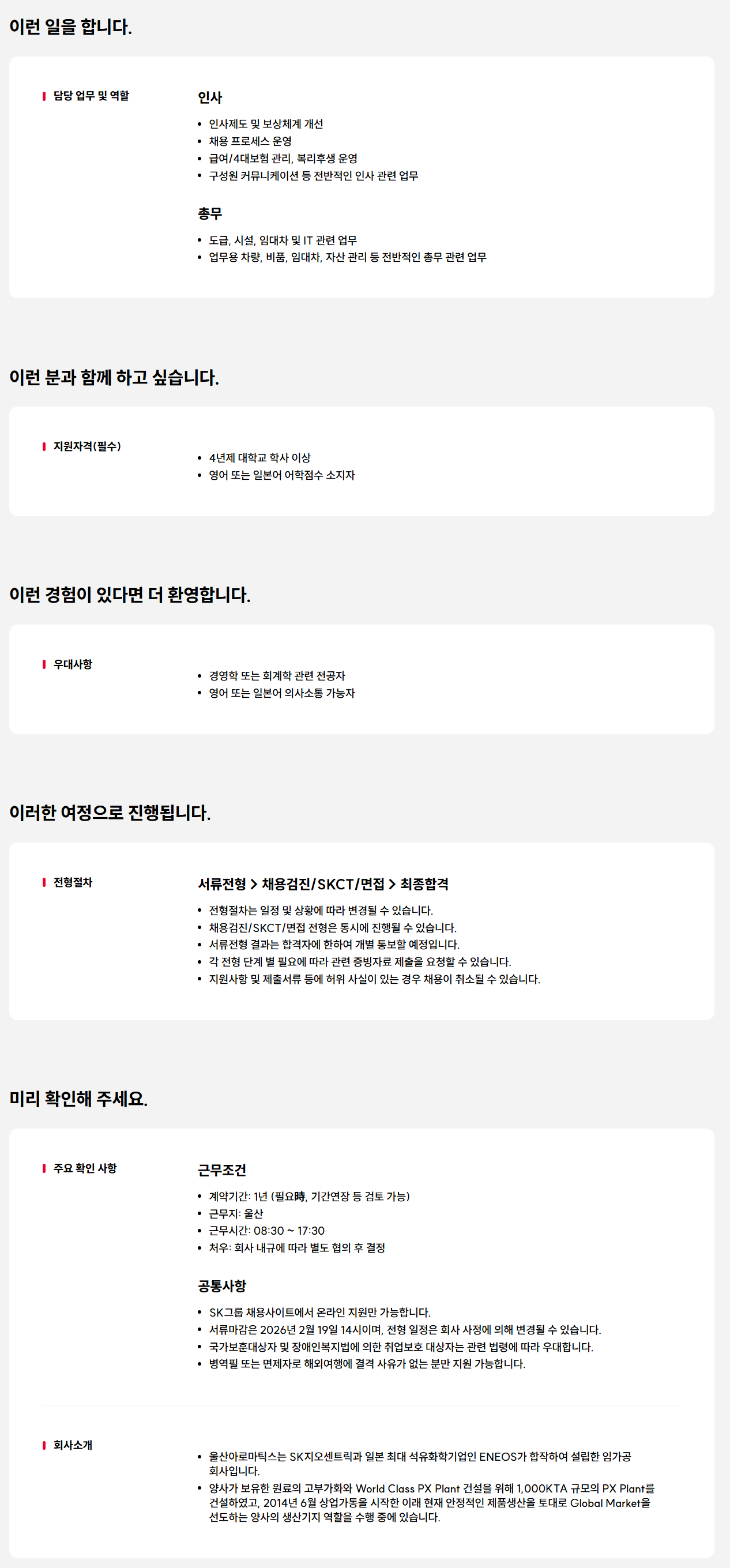 [울산아로마틱스] 인사/총무 신입 계약직 구성원 채용