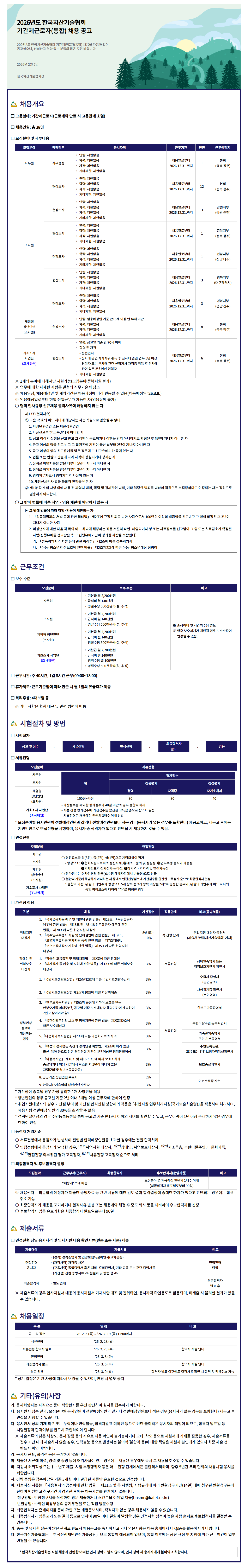[한국치산기술협회] 2026년도 기간제근로자(통합) 채용