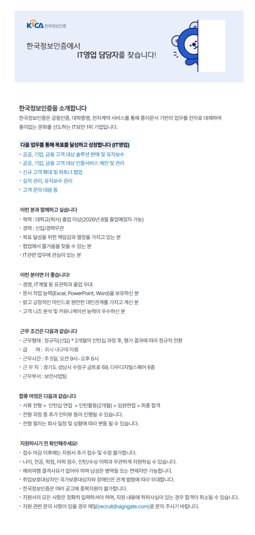 [채용전제형 인턴] IT영업 부문( ~02/19 09:00)