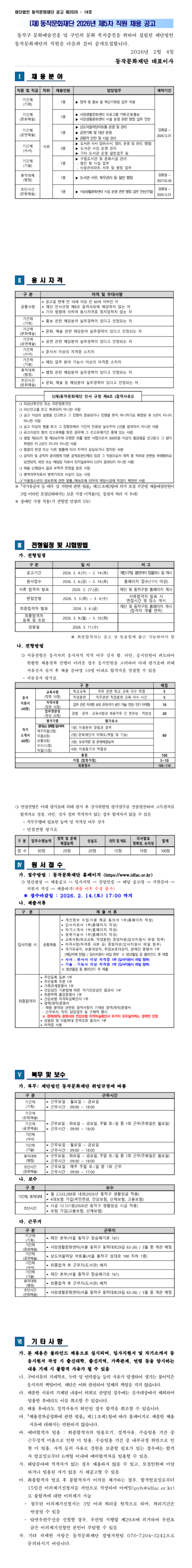 [동작문화재단] 2026년 제5차 직원 채용