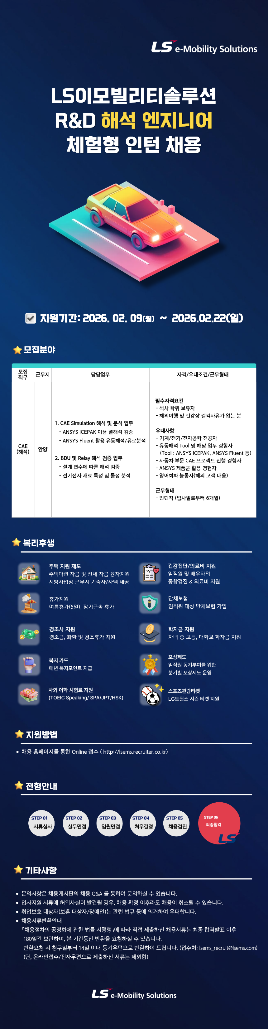 [LS이모빌리티솔루션] R&D 해석 엔지니어 체험형 인턴 채용