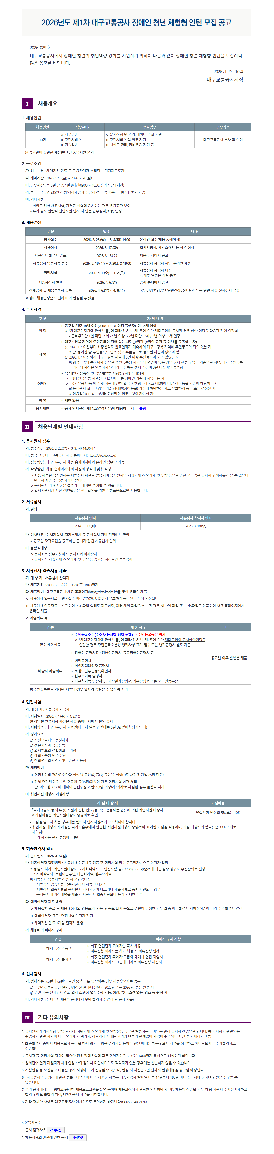 [대구교통공사] 2026년도 제1차 대구교통공사 장애인 청년 체험형 인턴 모집 공고