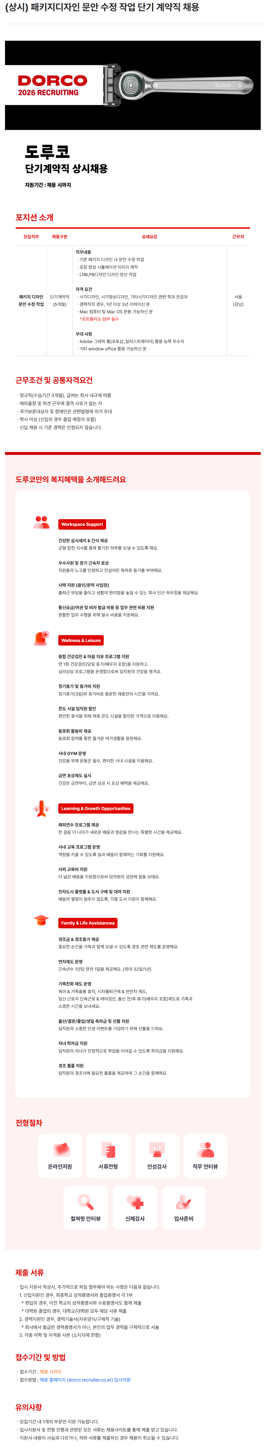 [도루코] (상시) 패키지디자인 문안 수정 작업 단기 계약직 채용