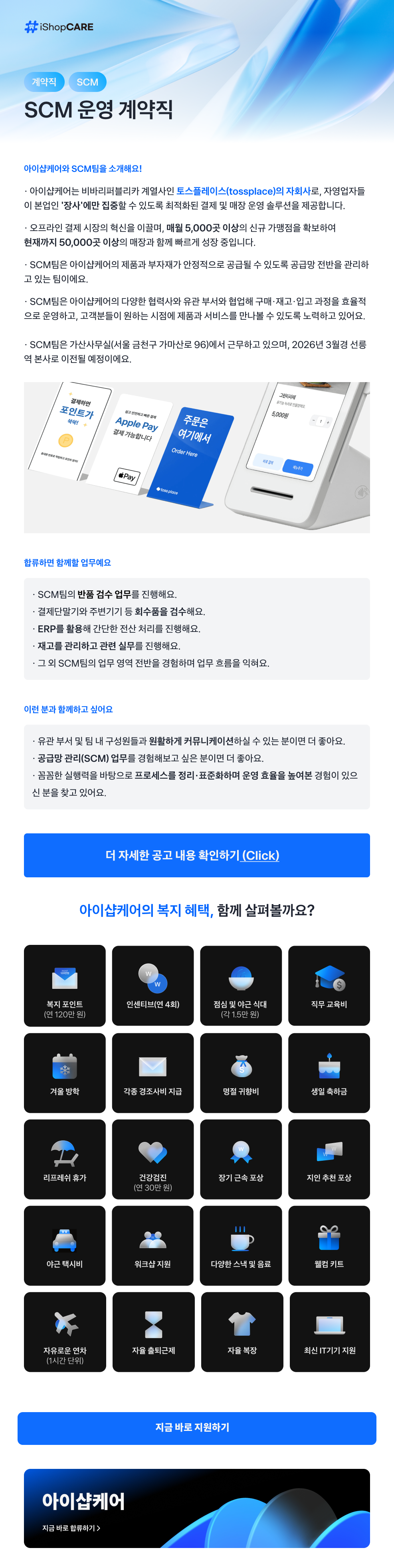 [토스플레이스 자회사] iShopCARE SCM 운영 계약직