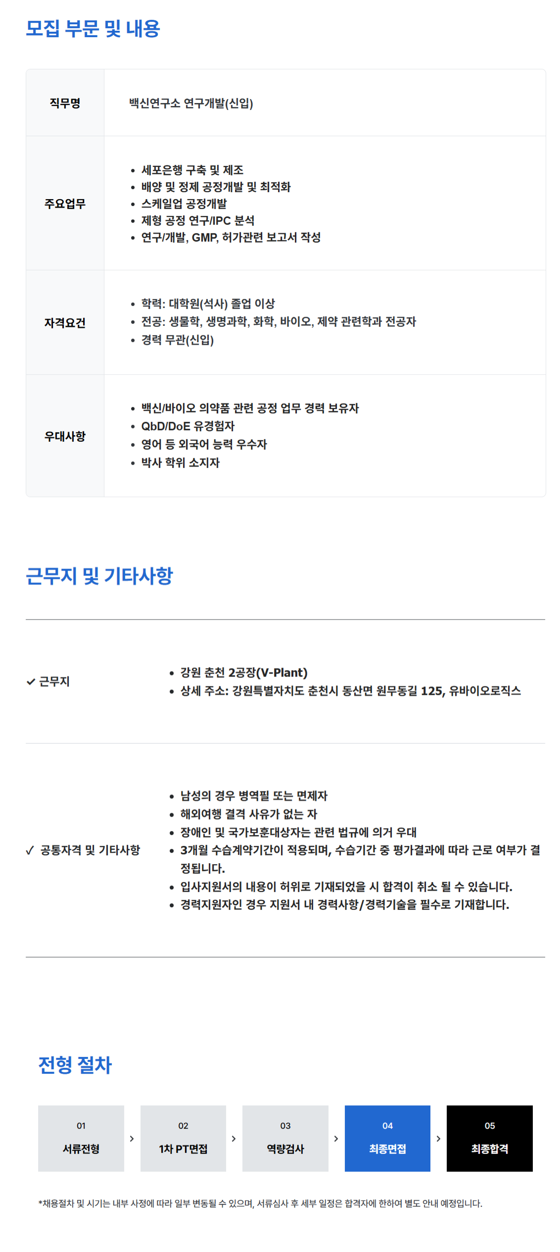 [유바이오로직스] 연구소 백신연구개발 담당자 채용(신입/춘천)