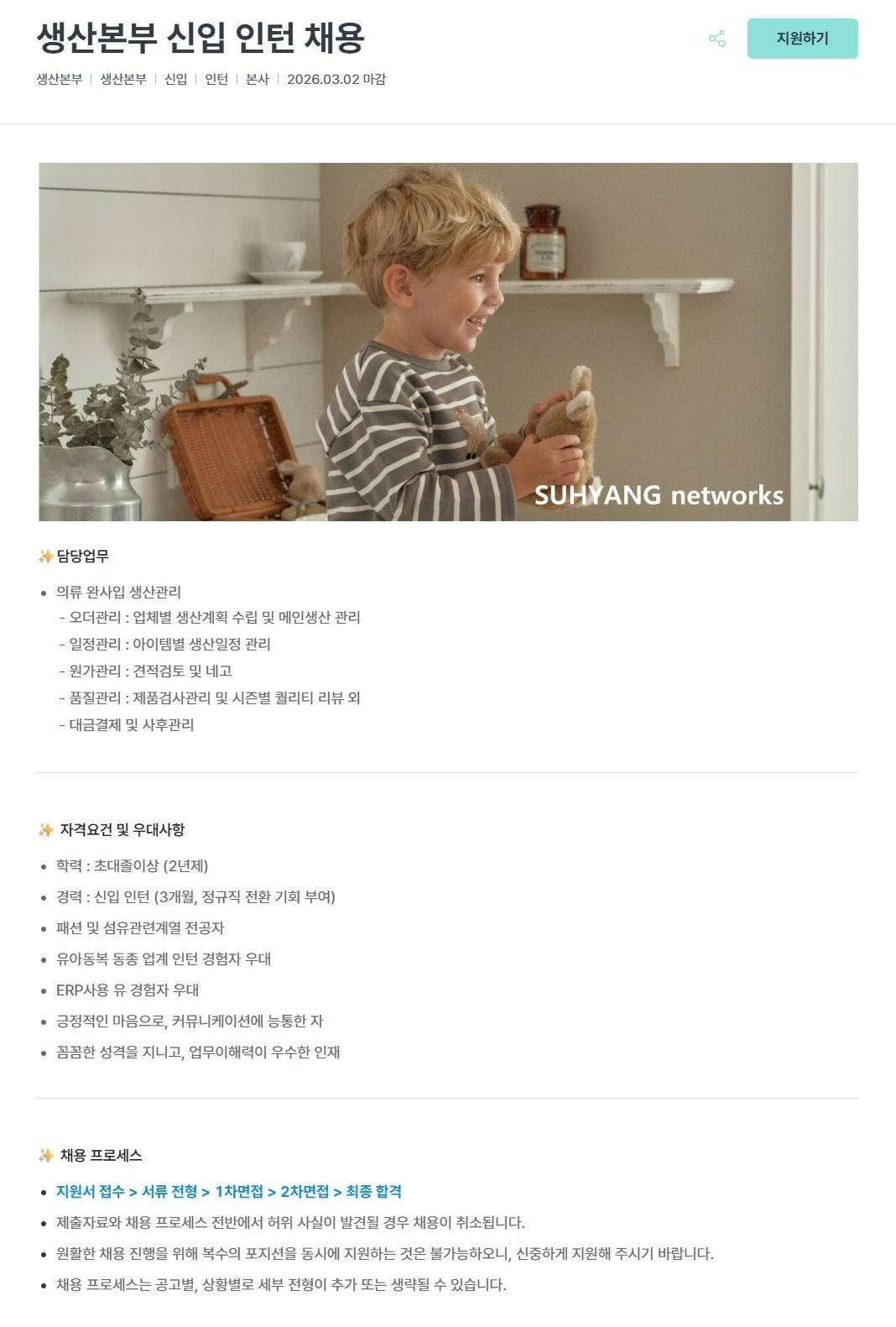 [서양네트웍스] 생산본부 신입 인턴 채용