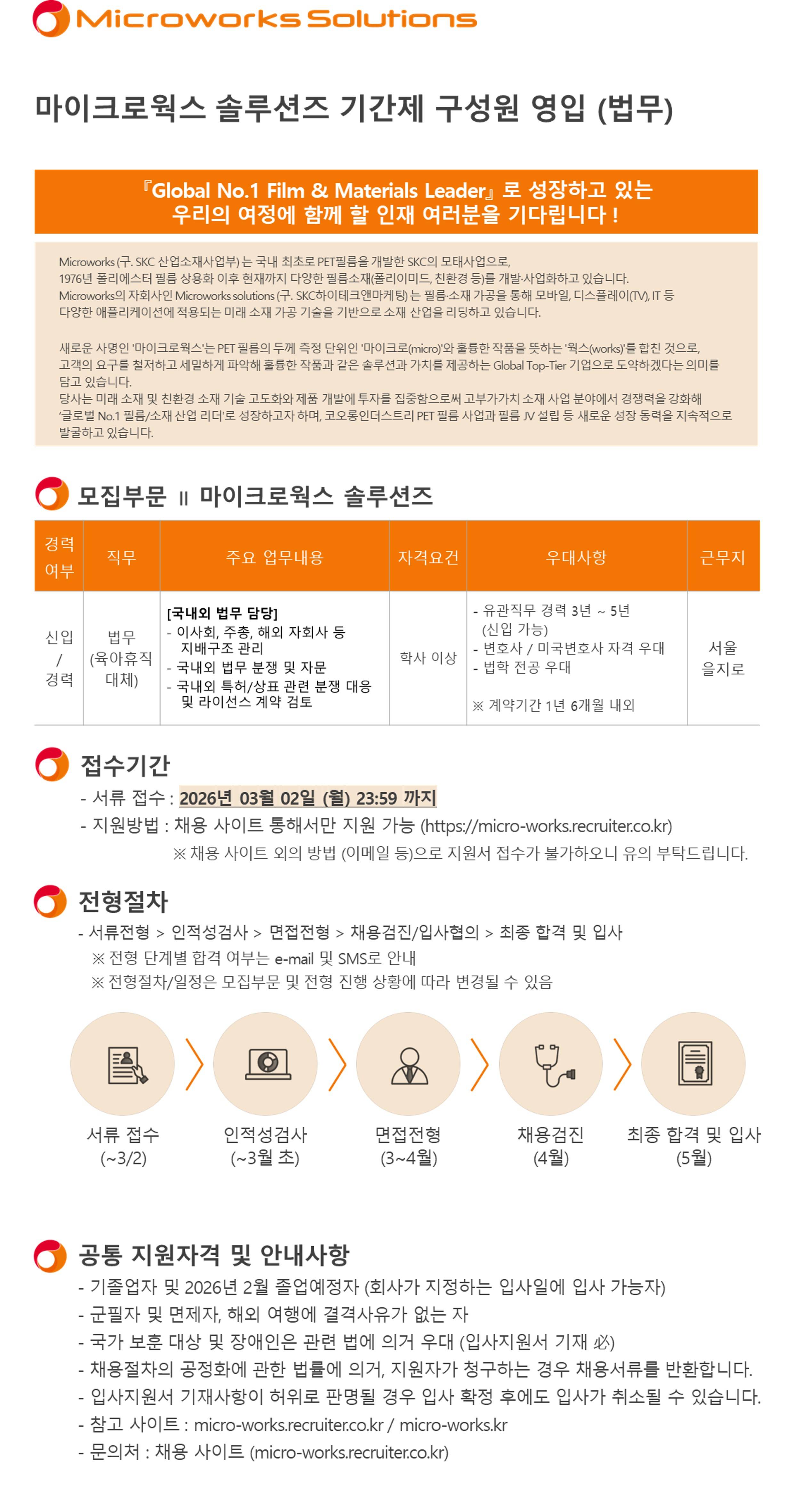 [SK마이크로웍스솔루션즈] 2026년 법무 신입/경력 기간제 구성원 채용