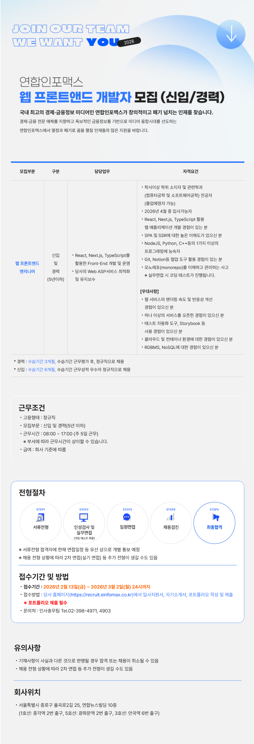 [연합인포맥스] 웹 프론트앤드 개발자 모집 (신입/경력)