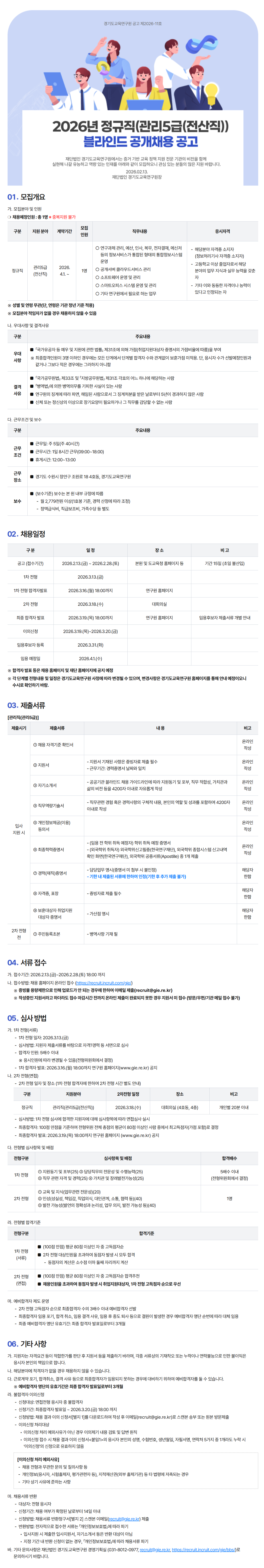 [경기도교육연구원] 2026년 정규직(관리5급(전산직)) 블라인드 공개채용