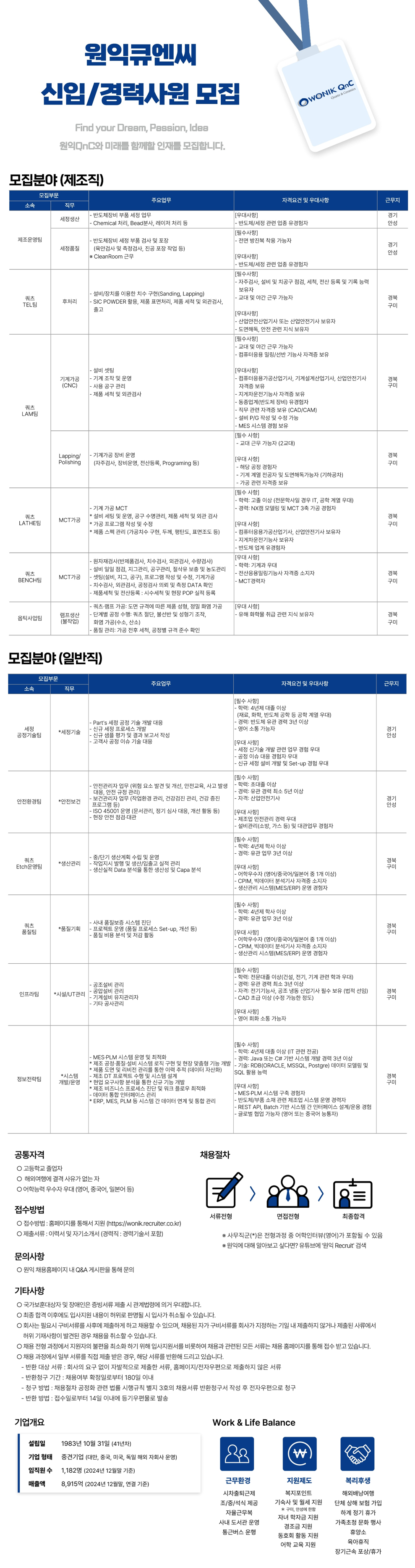 [원익큐엔씨] 신입/경력사원 채용(일반직/경력)