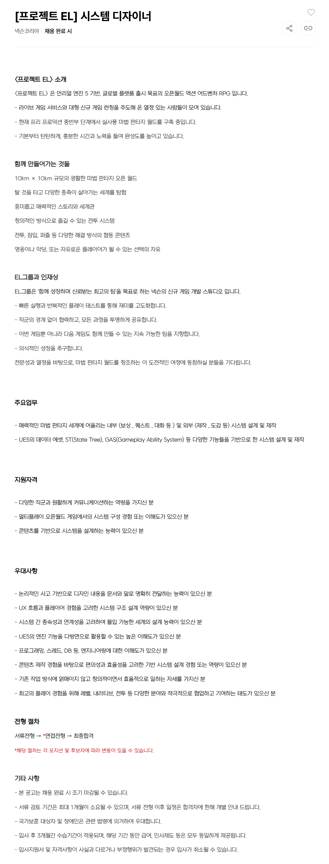 [넥슨코리아] [프로젝트 EL] 시스템 디자이너