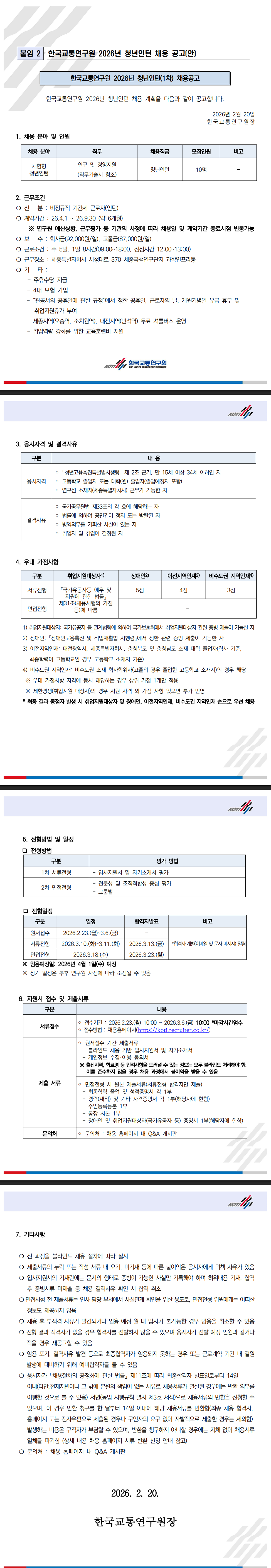 [한국교통연구원] 2026년 청년인턴 1차 채용