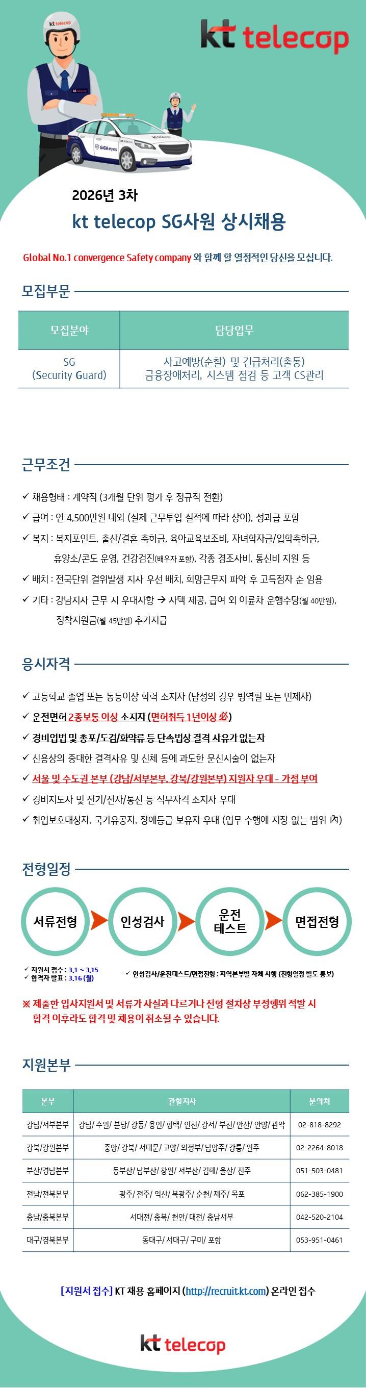 [KT텔레캅] 2026년 3차 SG사원 상시채용