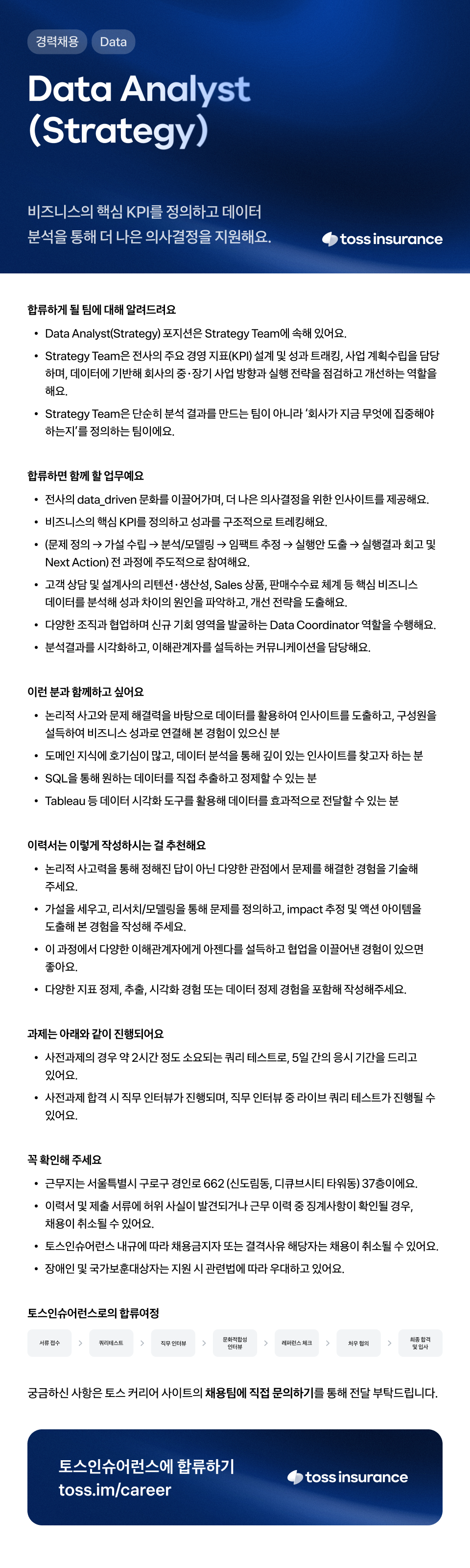 [토스인슈어런스] Data Analyst(Strategy)