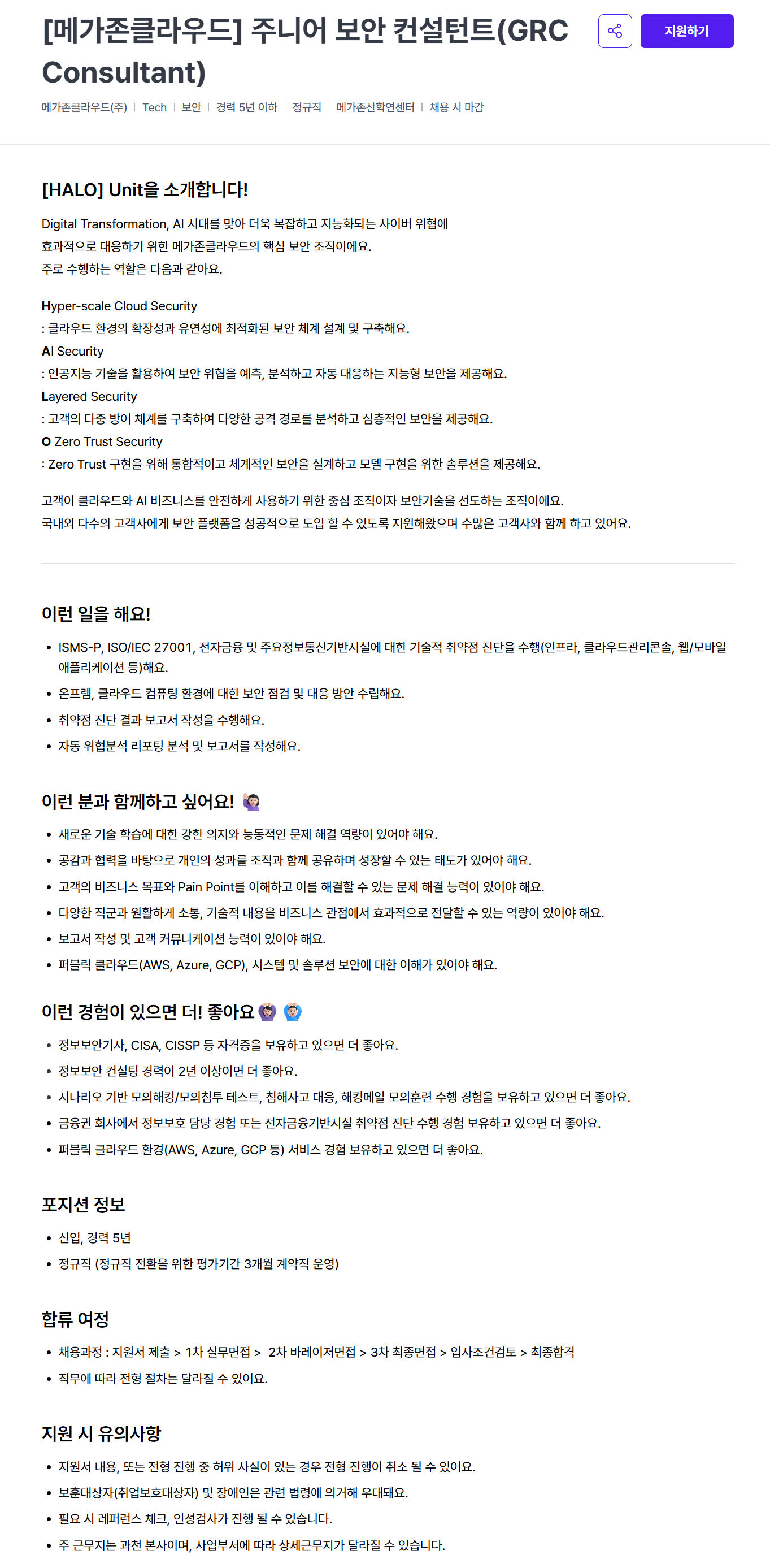 [메가존클라우드] 주니어 보안 컨설턴트(GRC Consultant)