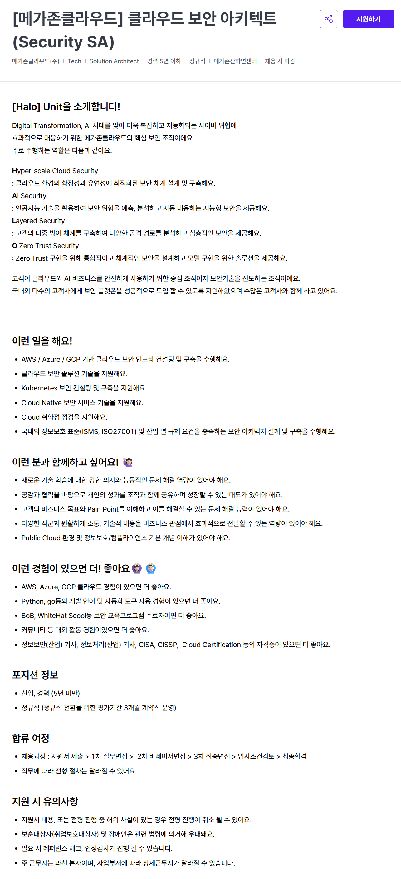 [메가존클라우드] 클라우드 보안 아키텍트(Security SA)