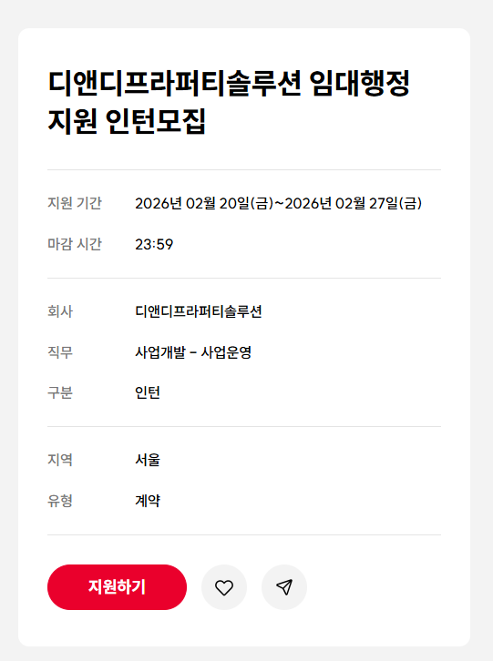 [디앤디프라퍼티솔루션] 임대행정 지원 인턴모집