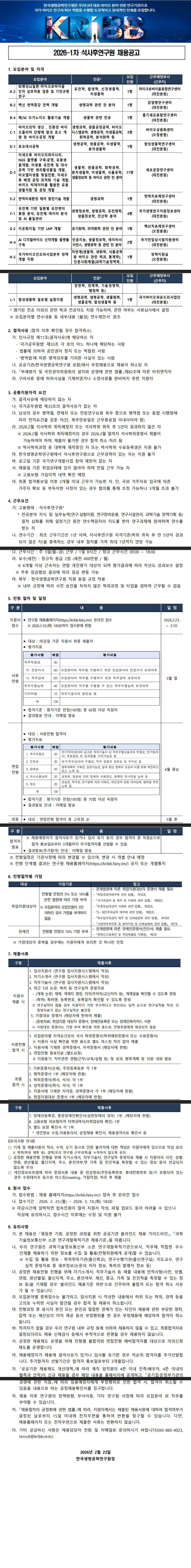 [한국생명공학연구원] 2026-1차 석사후연구원 채용