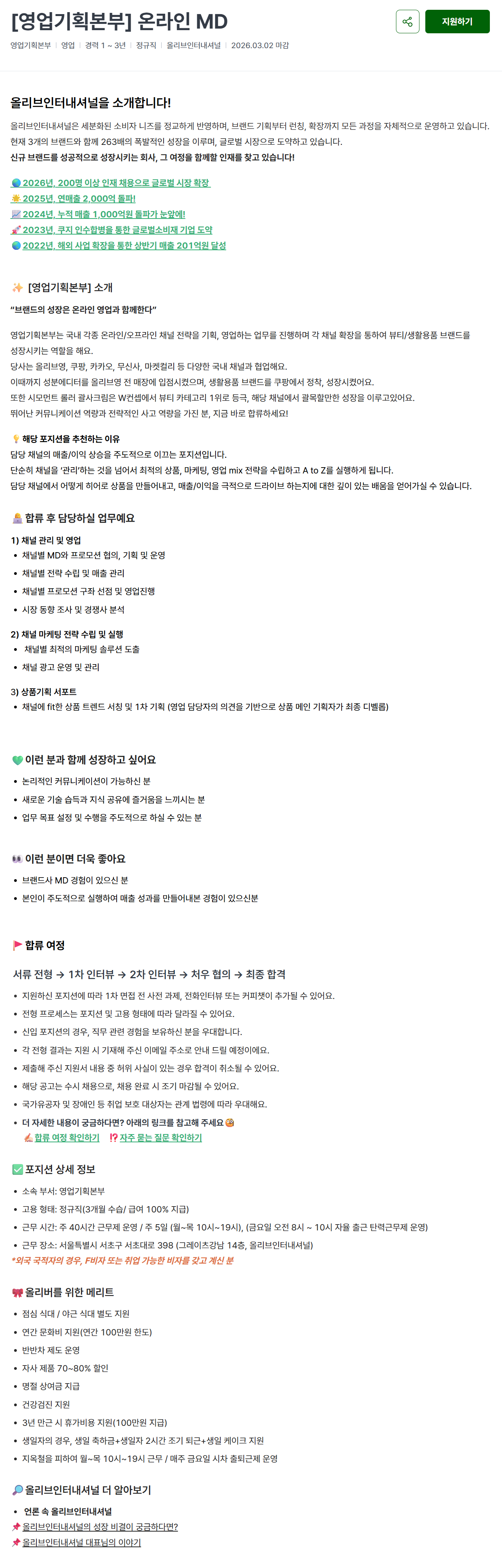 [올리브인터내셔널] [영업기획본부] 온라인 MD