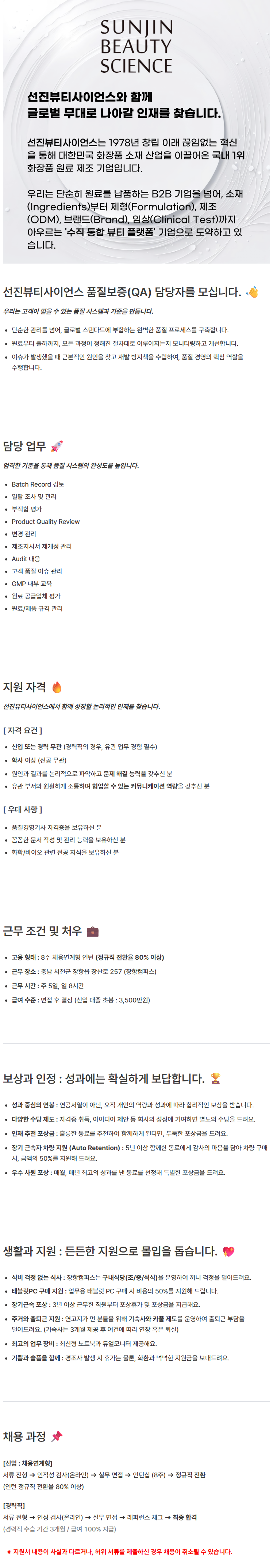 [선진뷰티사이언스] 소재부문 QA(Quality Assurance)