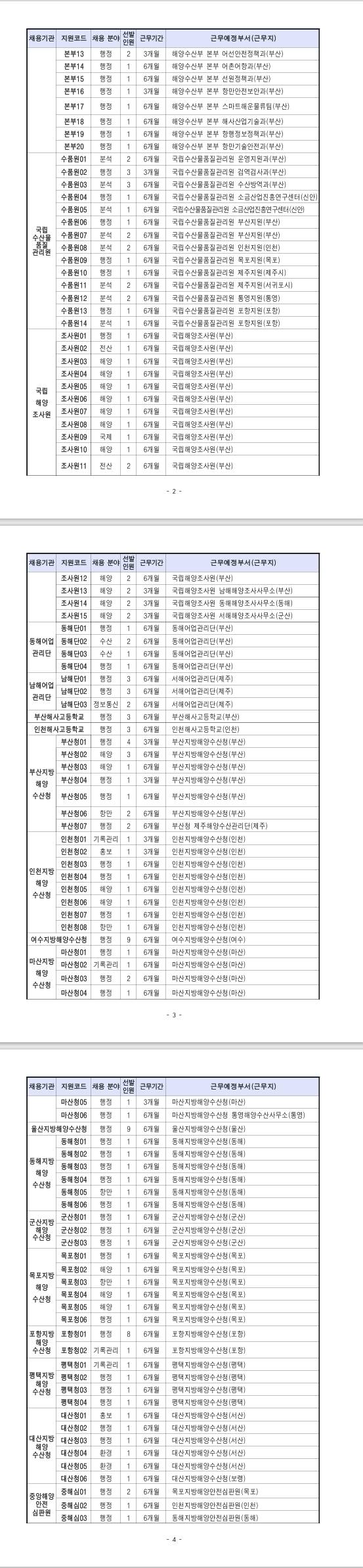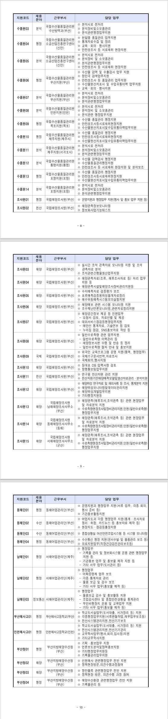 서해단01(행정) 2명, 서해단02(행정) 3명, 서해단03(정보통신) 2명