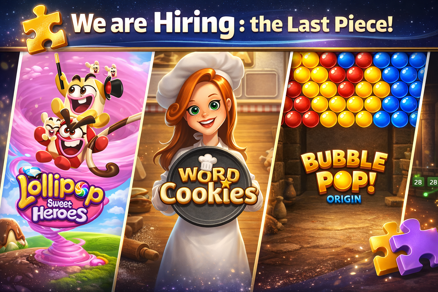 퍼즐원스튜디오는 전 세계 수 억명의 유저들이 오래도록 즐기고 기억할 최고의 퍼즐게임을 개발하는 모바일게임 스튜디오입니다. 워드, 버블슈터, 매치3, 블라스트 매치, 머지 등 다양한 퍼즐 장르에서 20개 이상의 타이틀을 만들어왔으며 누적 다운로드는 약 9억 3천만, 현재 매출의 99%를 해외 시장에서 창출하고 있는 글로벌 퍼즐 스튜디오입니다.