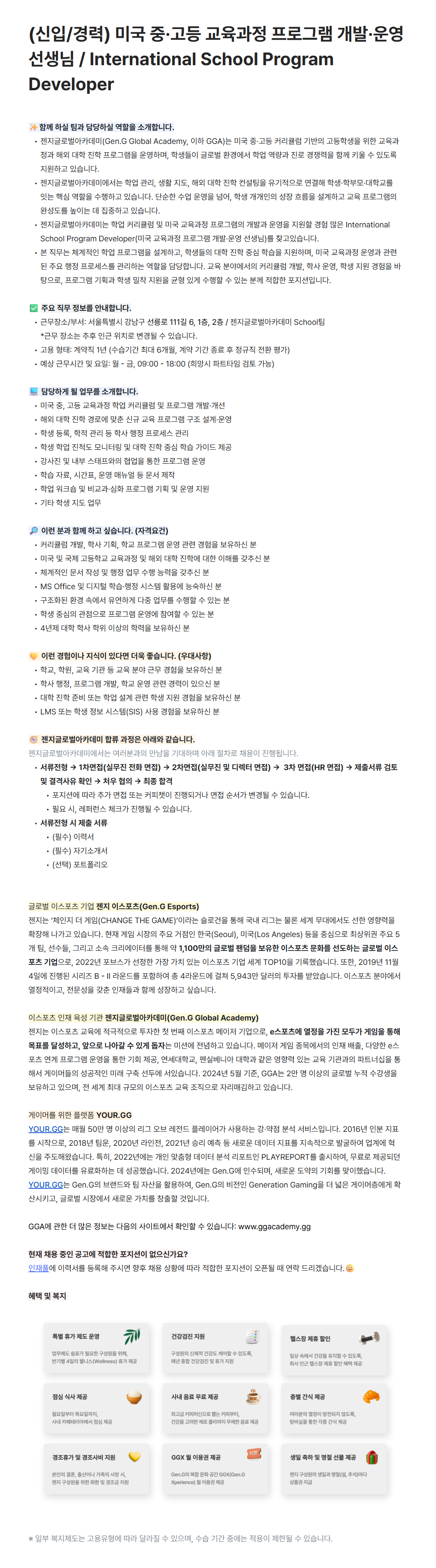 [젠지글로벌아카데미] 미국 중·고등 교육과정 프로그램 개발·운영 선생님