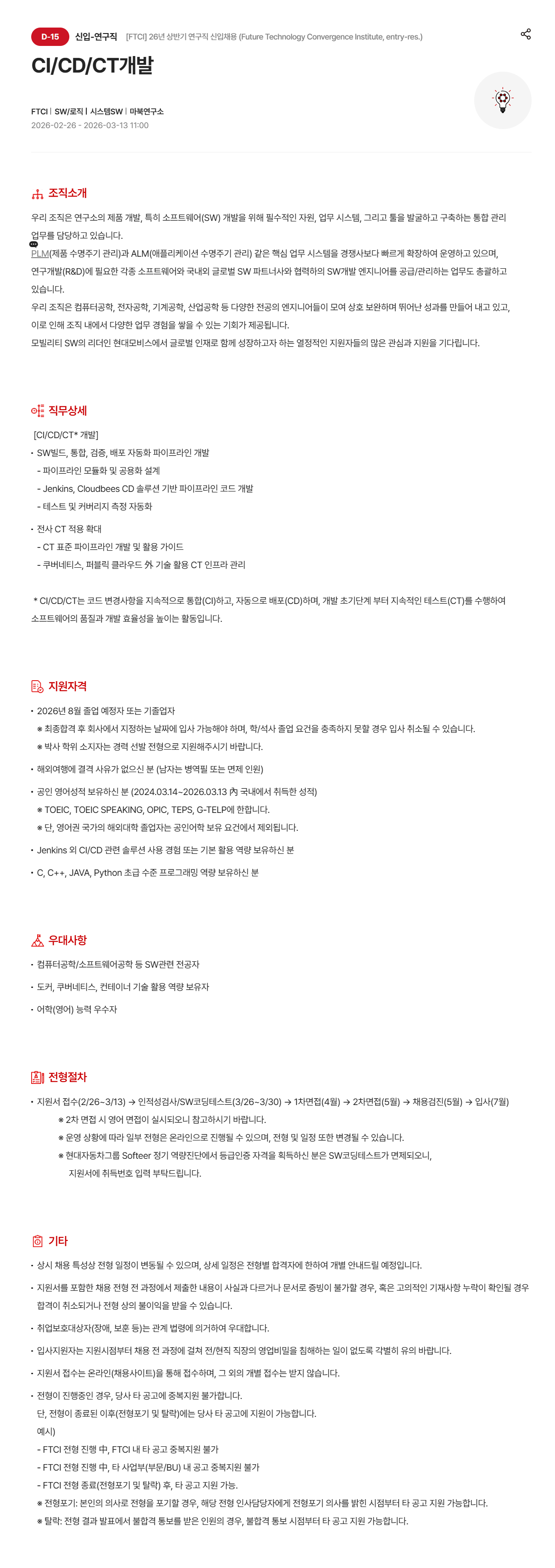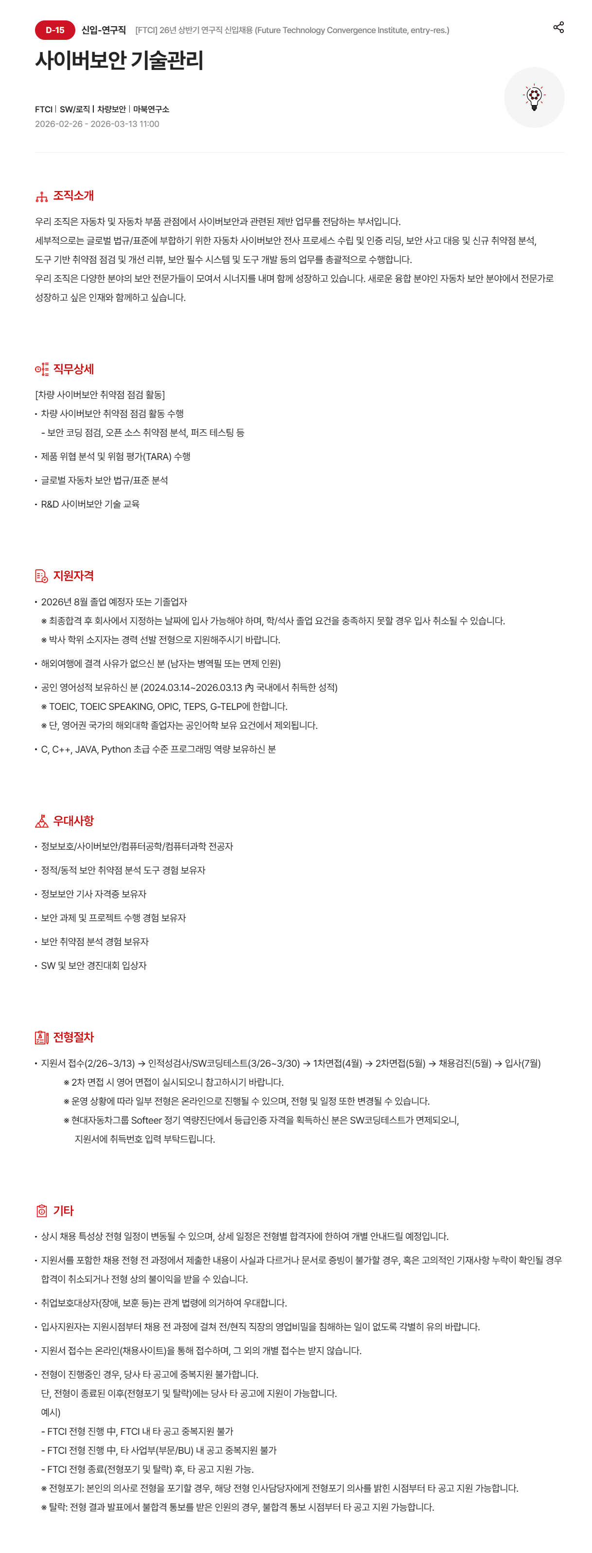 [현대모비스] [FTCI] 26년 상반기 연구직 신입 채용
