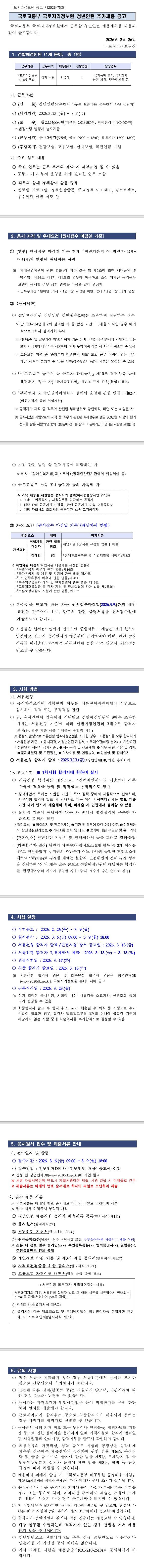 [국토지리정보원] 2026년 상반기 국토교통부(국토지리정보원) 청년인턴 추가채용 공고