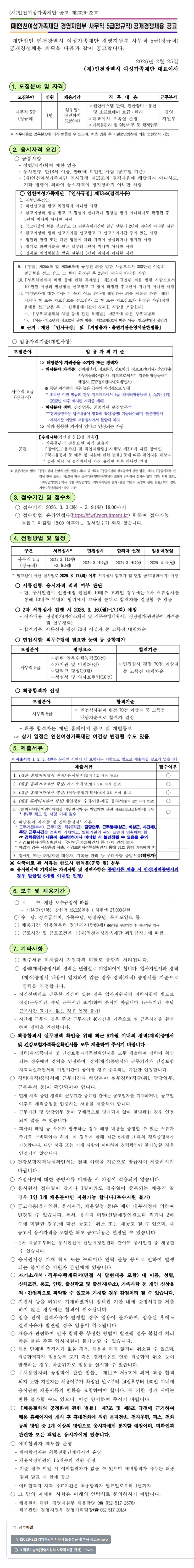 [인천여성가족재단] 경영지원부 사무직 5급(정규직-전산) 공개경쟁채용 공고