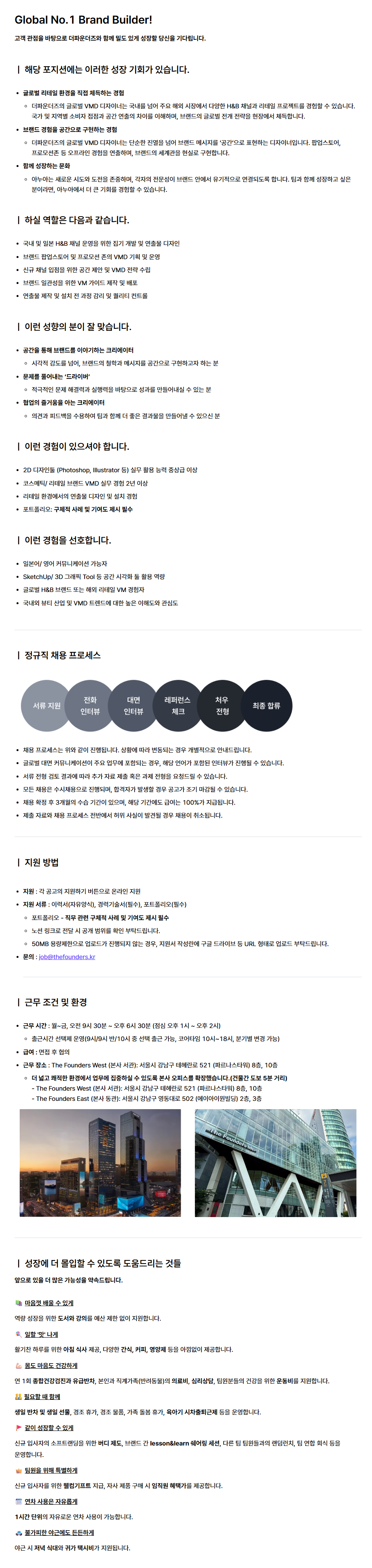 [더파운더즈] 글로벌 VMD 디자인 Sr. 매니저